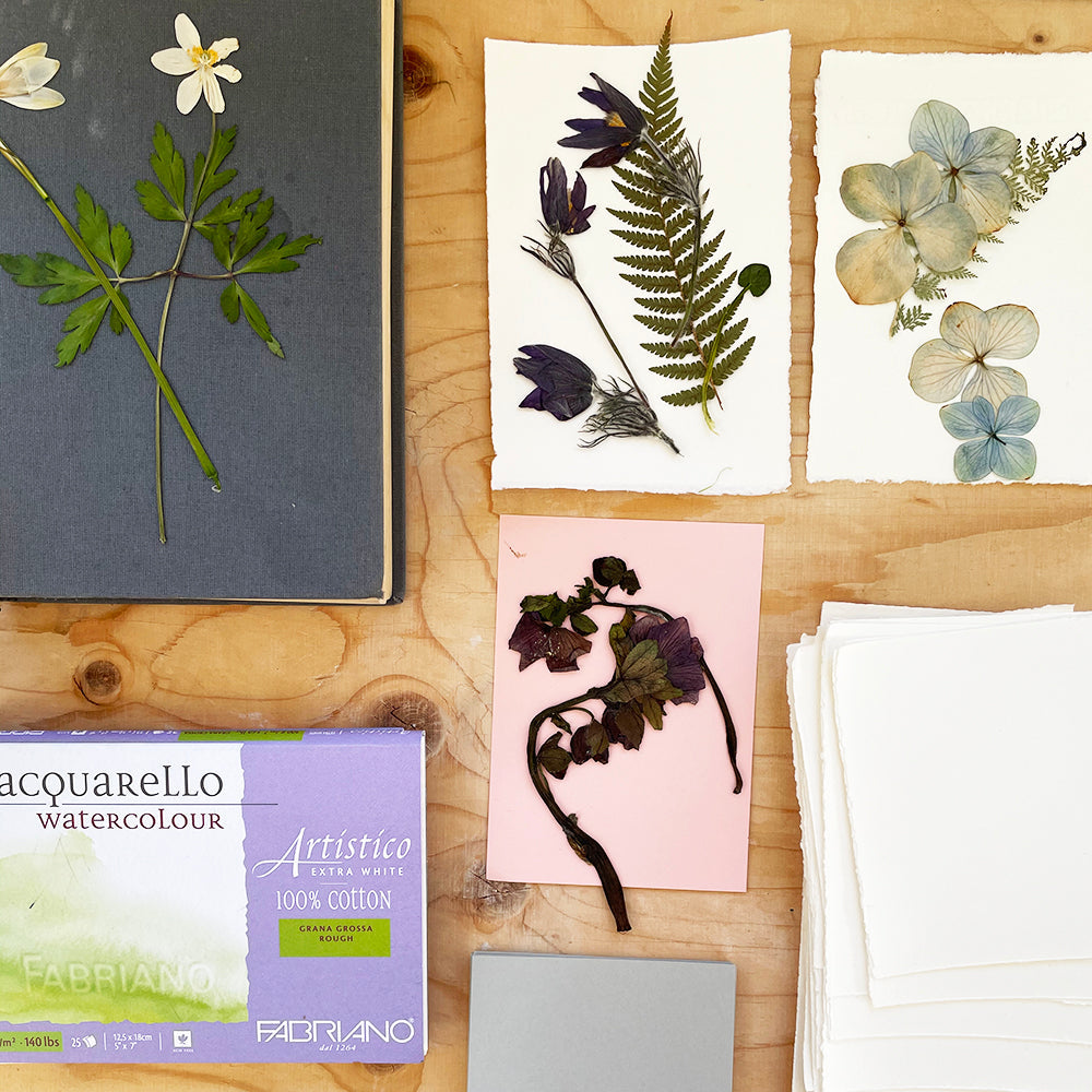 Udover de mange forskellige udtryk der med kan opnåes med tørrede og pressede planter, kigger vi også på mulighederne i papirklip, opbygning af lag med silkepapir, tekst, håndtegning og collage med fotonegativer.